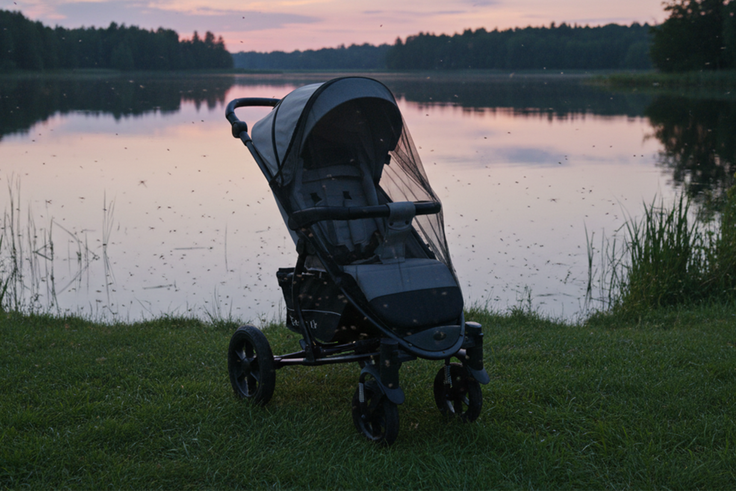 Москитная сетка, которая удобным образом расположилась в кармане подножки: максимально легко можно достать и так же легко упаковать обратно.