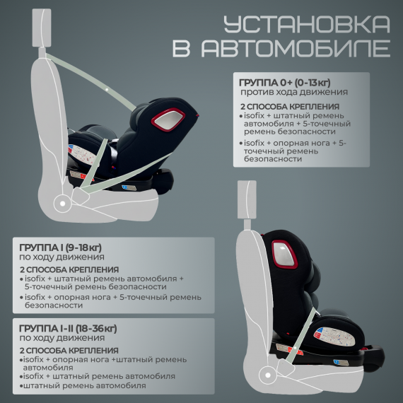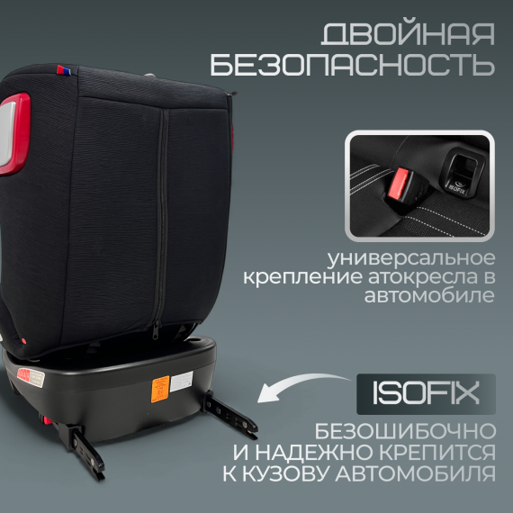 - ISOFIX+ штатный ремень автомобиля
