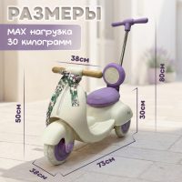 - Сиденье: комфортное широкое устойчивое сиденье с удобной спинкой (багажник внутри).