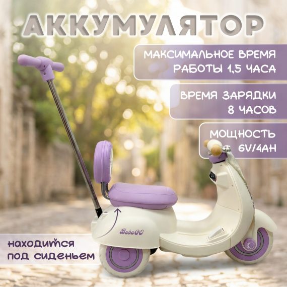 BubaGO Bicly — это не просто каталка, а настоящий стильный электроскутер для детей, сочетающий в себе комфорт, безопасность и массу ярких впечатлений. Благодаря продуманной конструкции и эффектному дизайну, Bicly станет лучшим спутником для прогулок и весёлых приключений дома и на улице.