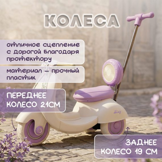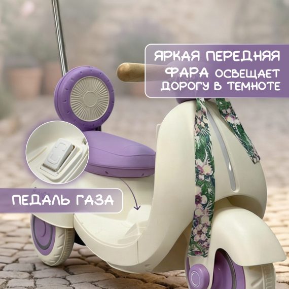 - Звуки мотора и современные мелодии сопровождают каждую поездку, создавая атмосферу настоящей поездки на скутере.