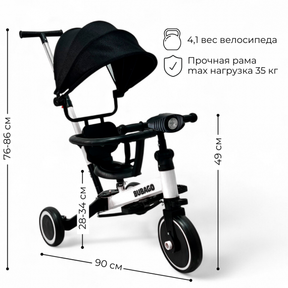 Вес велосипеда всего 4,1 кг, он легкий и удобный в использовании. Прочная металлическая рама выдерживает нагрузку до 35 кг.