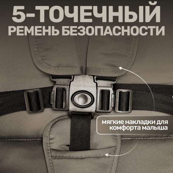 Соответствие стандарту безопасности ECE R129, мягкие анатомические вкладыши, 5-точечные ремни и ударопрочный корпус — всё для спокойствия родителей.