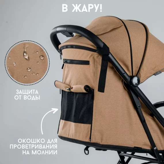Защита и комфорт: Для нас важно, чтобы ваш ребенок чувствовал себя комфортно в любую погоду. Водонепроницаемая ткань с фактором защиты от солнца UPF50+ и большой капюшон с дополнительной секцией и съемным козырьком защитят его от яркого солнца и плохой погоды, инновационное окно для вентиляции на задней спинке с защитной сеткой обеспечит свежий воздух внутри коляски.