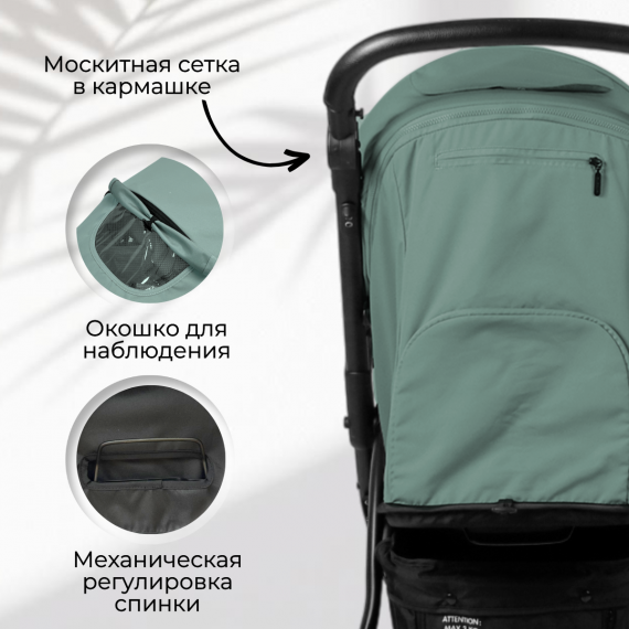 - Москитная сетка в окошке для проветривания на спинки защитит от насекомых, а смотровое окно на магните в капюшоне — для контроля за малышом.