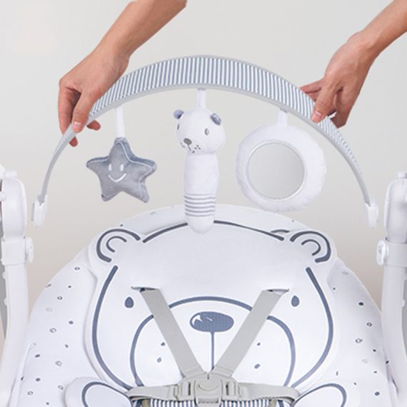 - 3 режима таймера автоматического отключения: 15, 30 и 45 минут. Родители могут выбрать, как долго качели будет работать, не беспокоясь, что малыш заснёт, а устройство продолжит качать.