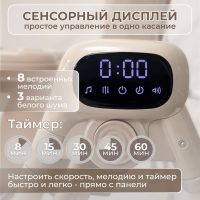 Когда малышу нужно отдохнуть или уснуть, вы выбираете подходящий режим укачивания, включаете спокойную мелодию или белый шум и настраиваете таймер. Наклон спинки до 165°, мягкий вкладыш и надёжные пятиточечные ремни создают комфортные и безопасные условия для сна.